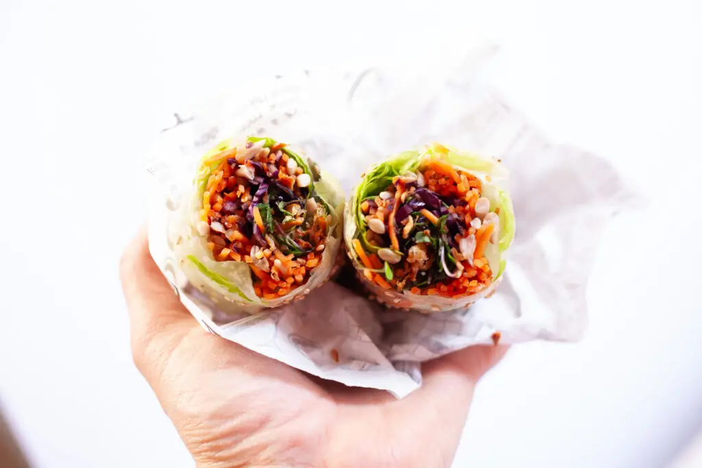 Rouleaux végétaux frais roulés à la main dans une fine feuille de riz et garnis d’un cœur généreux de salade croquante, carottes râpées, chou blanc mariné (huile de sésame, tamari, vinaigre de riz), graines de tournesol et de sésame, gingembre frais et micropousses bio cultivées sur place. Une base saine, colorée et gourmande — la signature Koumaï.